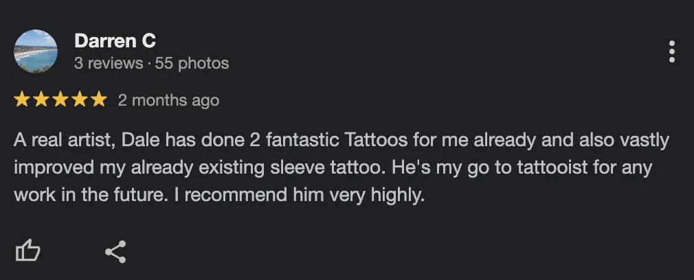 Dale is the resident artist and owner of Tattoo Styles, with over seven years of experience running his own successful studio. Originally from South Africa, Dale was introduced to the world of tattooing at a young age, inspired by watching his older brother work. From the age of 10, he began assisting with sketches and stencils—an early start that laid the foundation for his artistic journey.